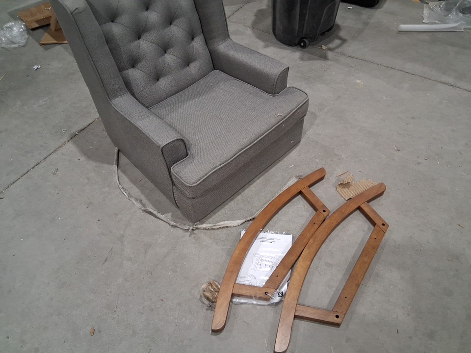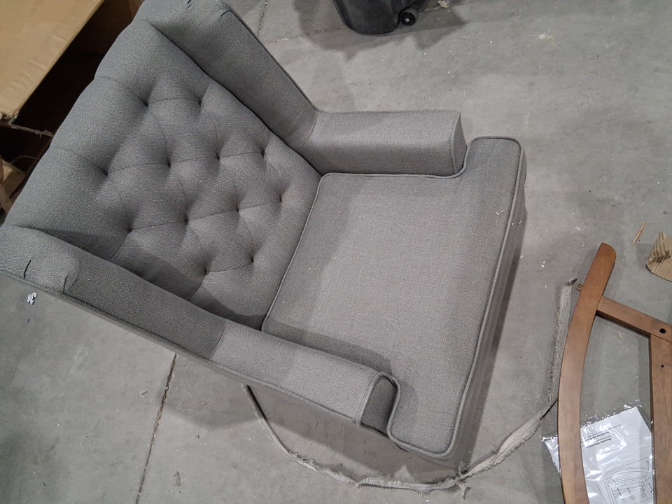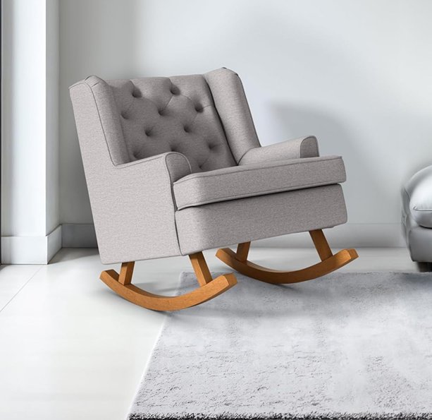 CORLIVING Eleanor Fabric Upholstered and Tufted Timeless Rocking Arm Chair with Wood Frame - 39.37" x 28.74" x 34.65" - LIGHT GRAY (MODEL: LXA-116-R)