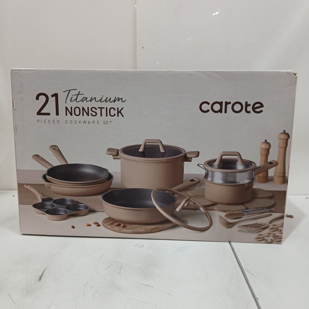 21PC CAROTE NAVARIS TITANIUM NON-STICK COOKWARE SET, POTS AND PANS SET - TAUPE (MODEL: A11692)