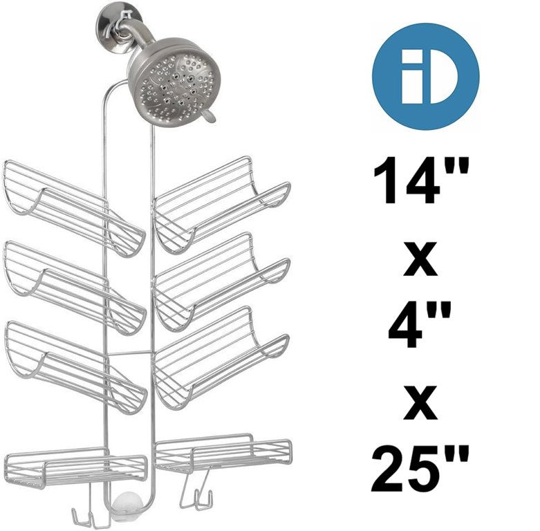 IDESIGN VERONA METAL WIRE HANGING SHOWER CADDY WITH SHAMPOO AND CONDITIONER HOLDERS - 14" x 4" x 25" - SILVER (MODEL: 68546-RW3038)