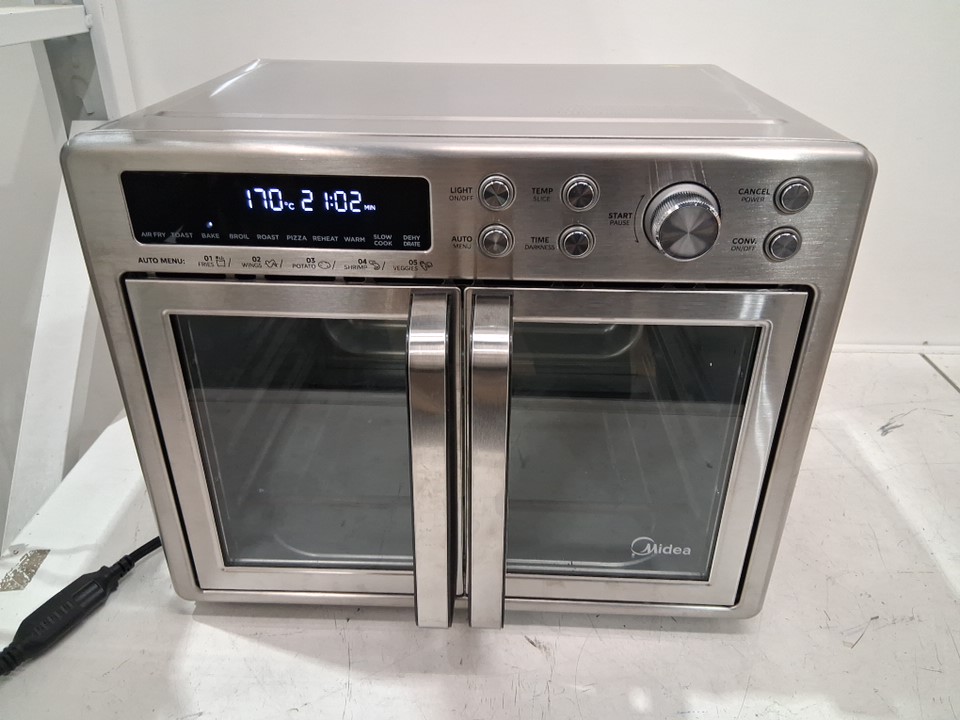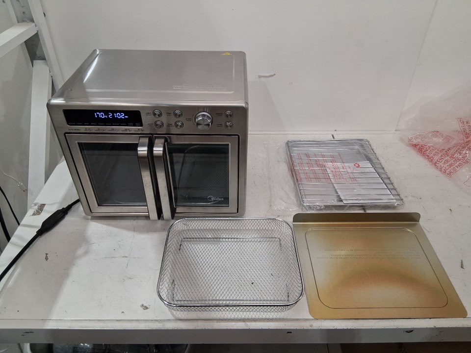 item has signs of previous use such as color change on the plate and food residue inside the machine (see photos). tested for power.