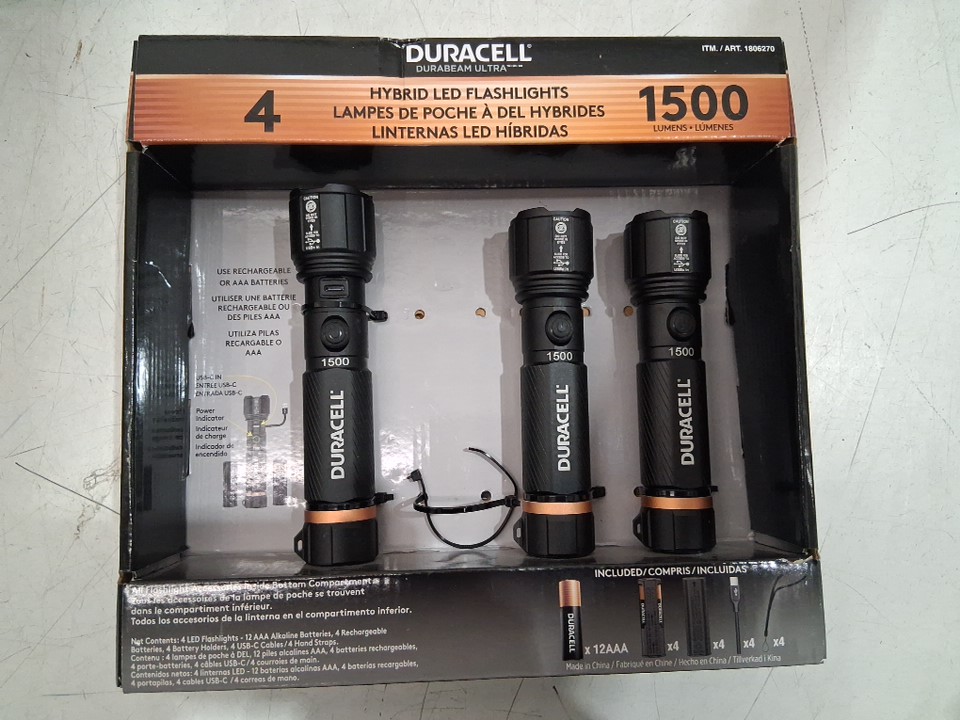 3pk duracell hybrid led flashlights, battery operated or rechargeable battery operated - 1000 lumens