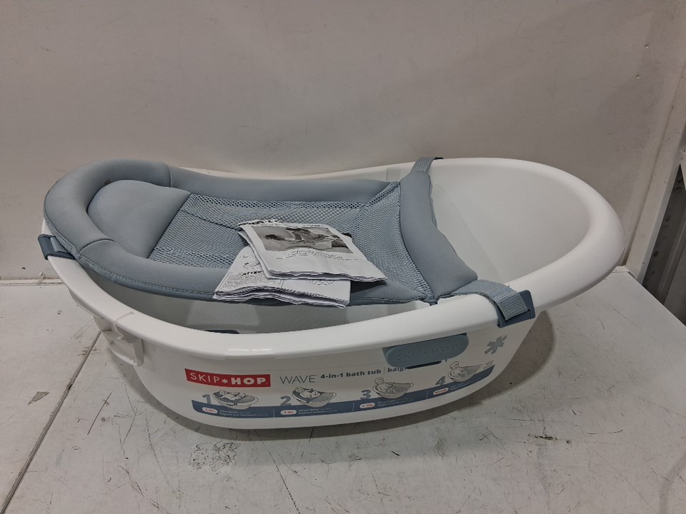 skip hop Wave 4-in-1 Baby Bath Tub - newborn to 2 years - 15lb to 25lb - white/blue (MODEL: 9L511910)