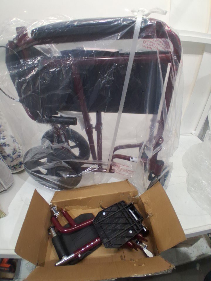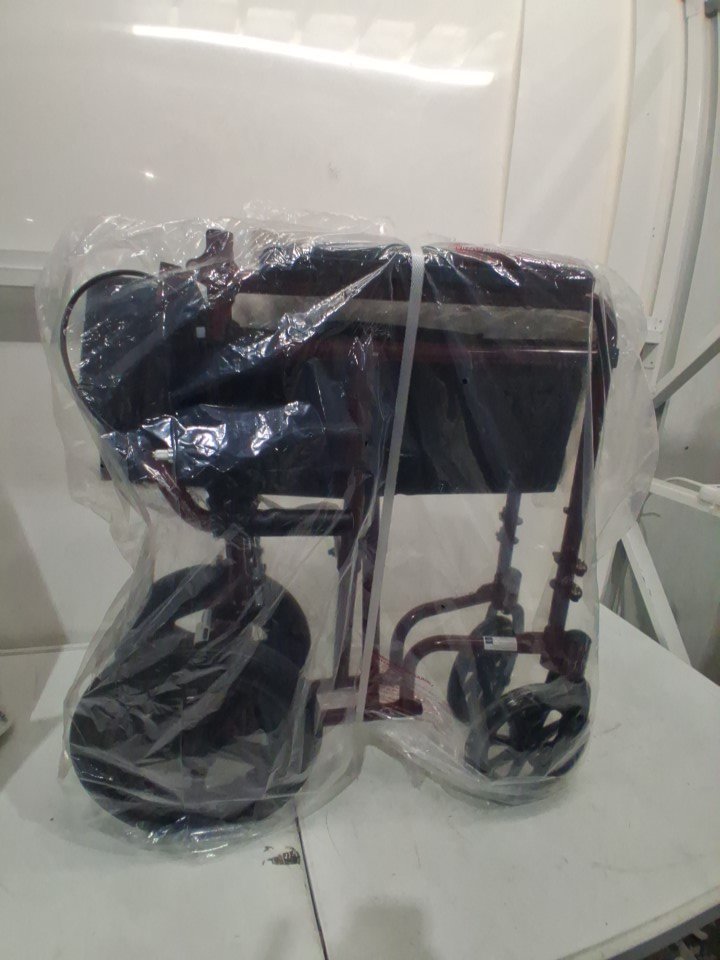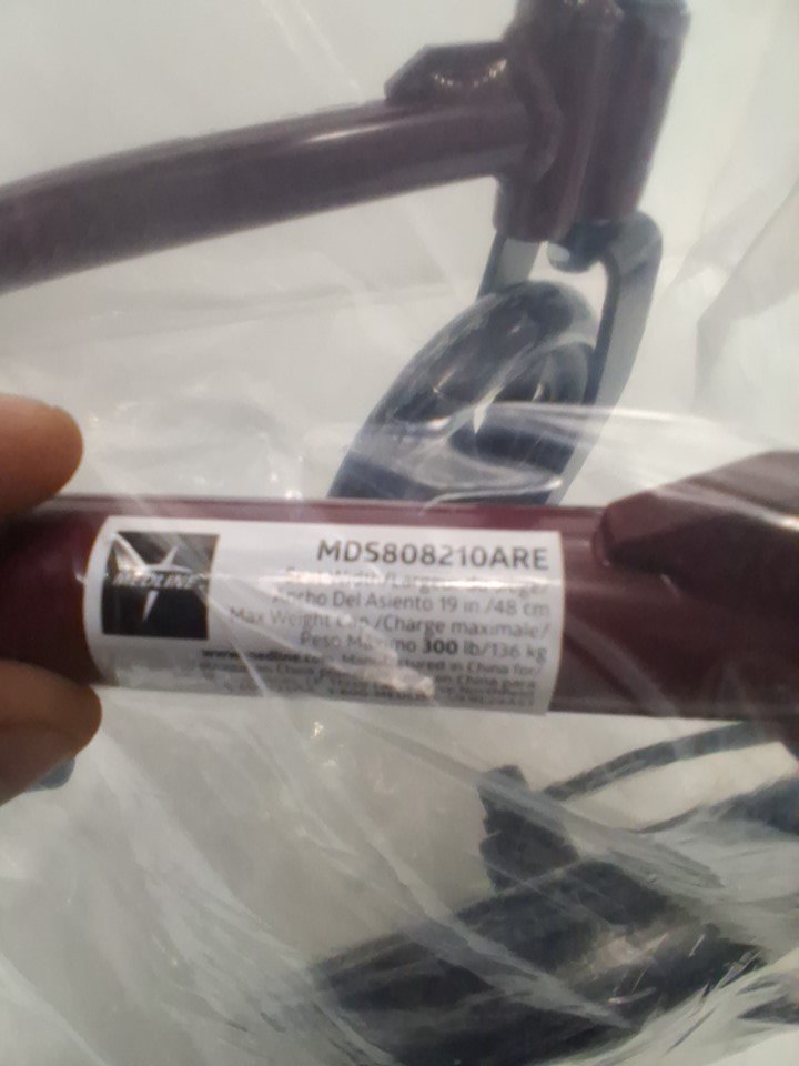 MEDLINE BASIC ALUMINUM TRANSPORT WHEELCHAIR - 19" - 12" REAR WHEELS WITH BRAKES - 300lbs capacity - RED (MODEL: MDS808210ARE)
