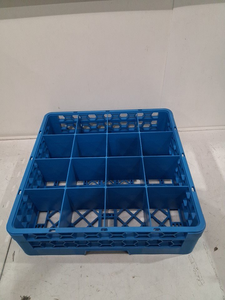 Carlisle FoodService Products Opticlean Plastic Divided Glass Rack - 19.8"x19.8"x5.5" - blue