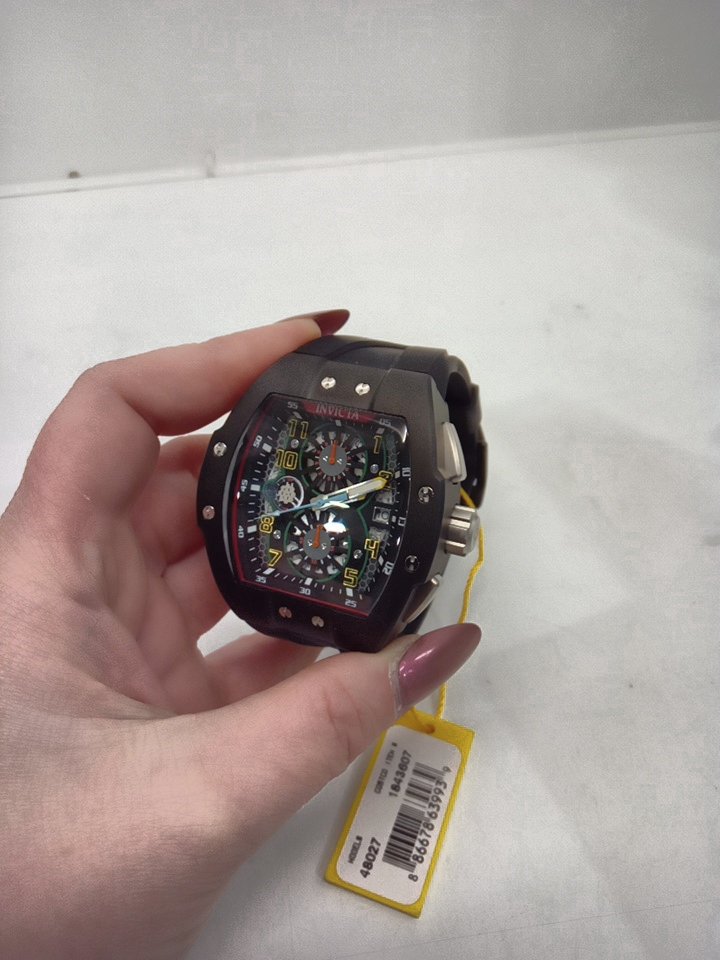 MENS invicta racing waterproof quartz analog watch - 47mm - black band / black dial (model: 48027 )