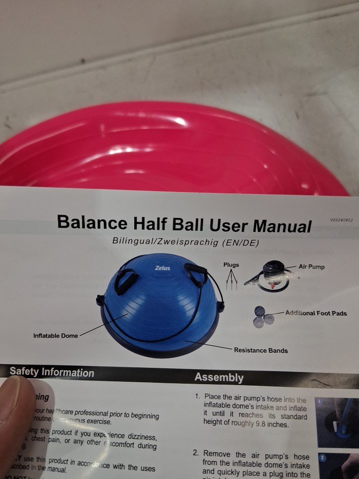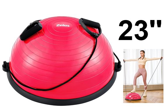 Z ZELUS Large Yoga Balance Ball Trainer with Resistance Bands & Foot Pump for Fitness Strength Exercise Workout - 23'' - pink