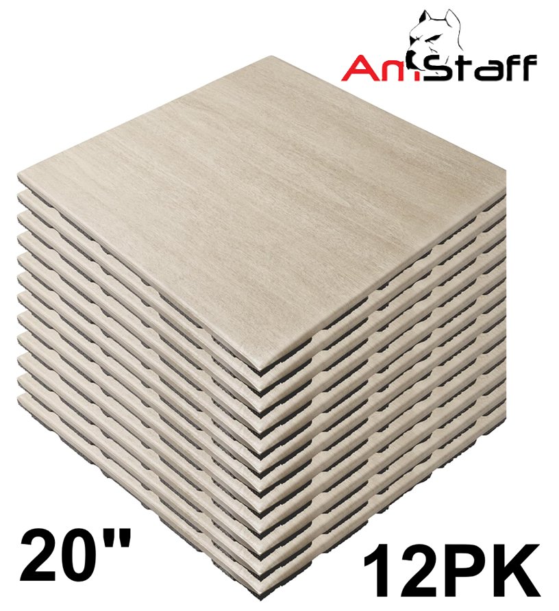 12PK AmStaff Fitness Rubber Floor Tiles with Wood Finish - 20" - Grey (model: GF024/GFGYWOOD-12PACK)