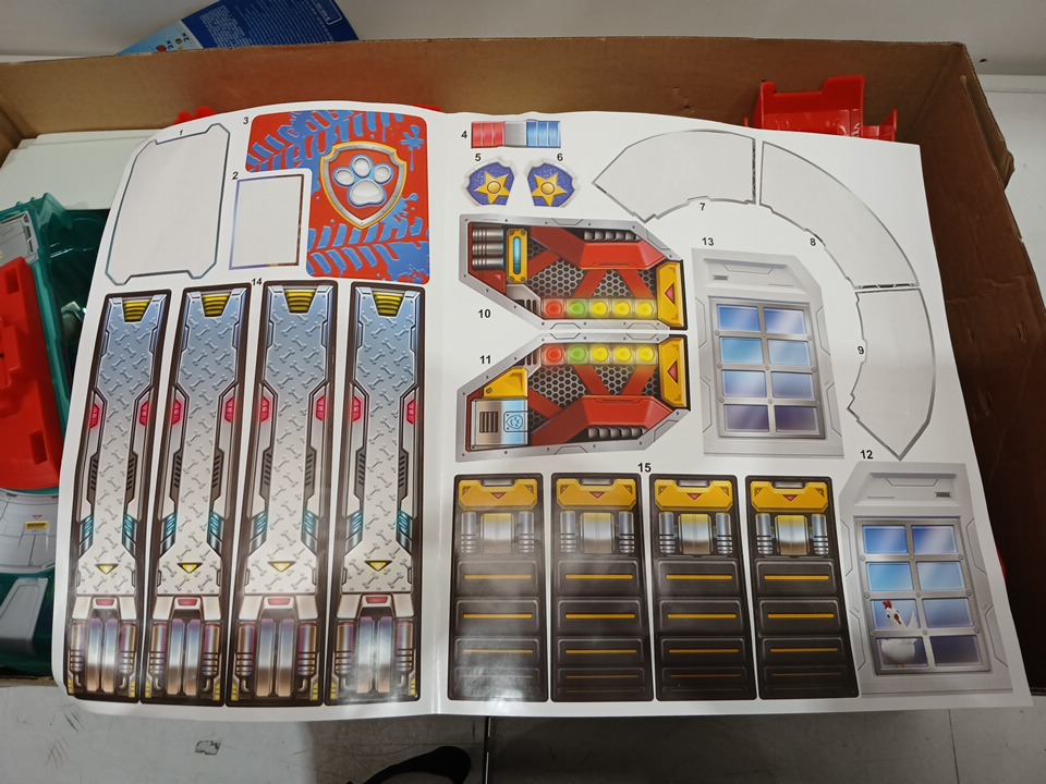 some of the stickers have been applied, suggesting previous assembly
