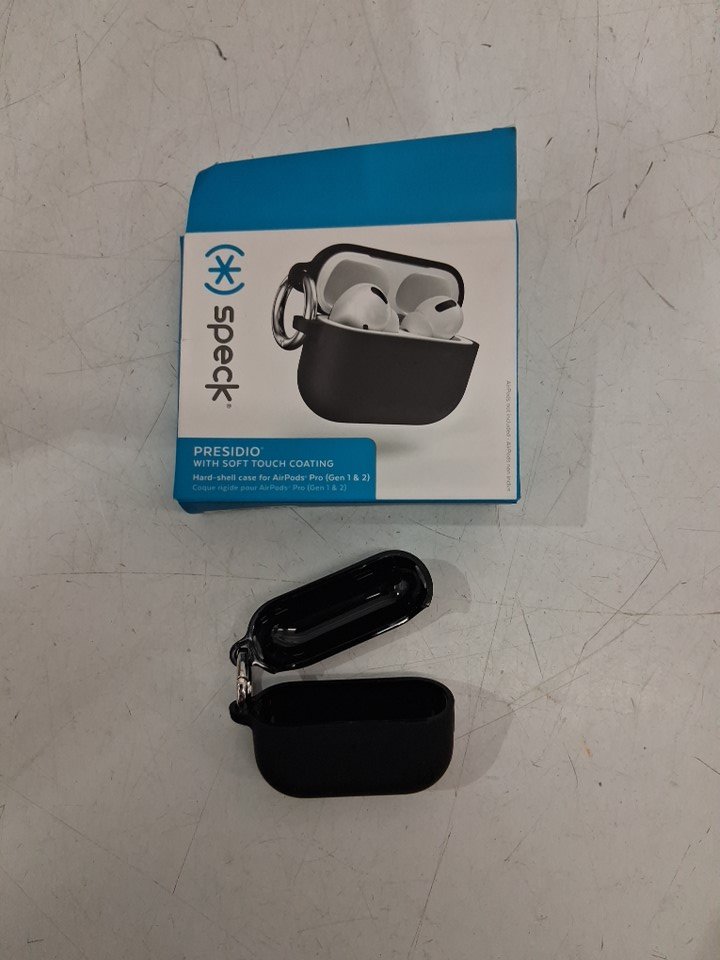SPECK PRESIDIO CASE WITH Durable Soft-Touch Coating AND Carabiner Attachment - FITS AIRPOD PROS 1ST/2ND GEN - BLACK (MODEL: 140773-1041)