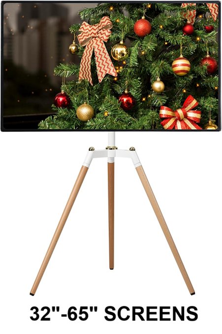 ETHU Easel TV Height Adjustable Tripod Stand- for 32"-65" Screens - white/wood-(model:‎MYH05802WW)