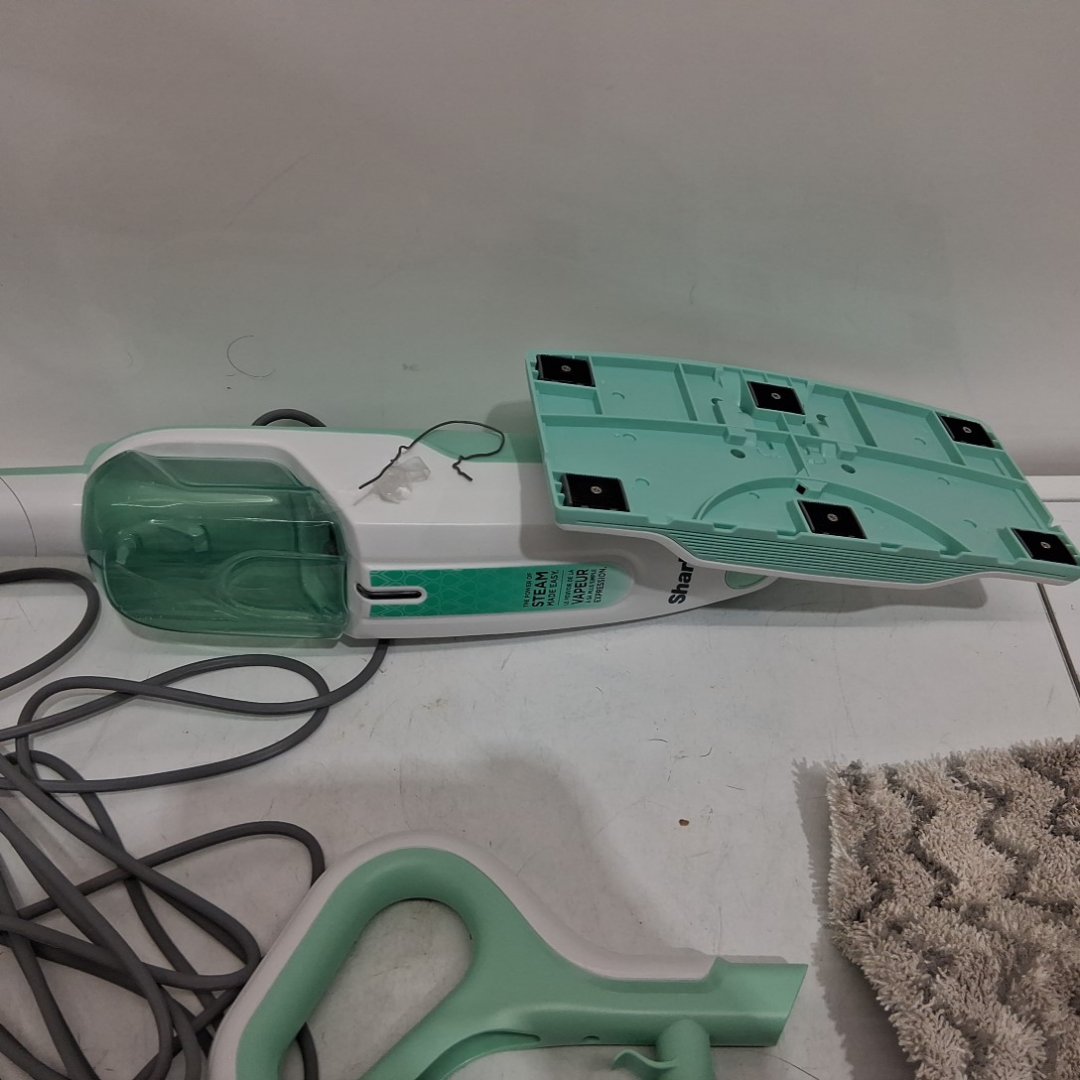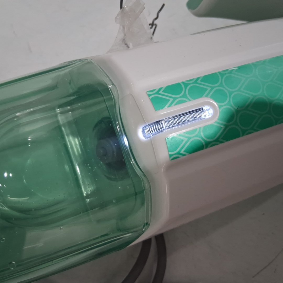 There is residual water in the tank and the pad is a bit dirty from previous use.