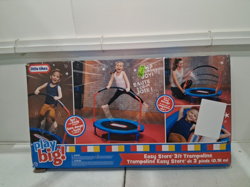 LITTLE TIKES Play Big EASY-STORE KIDS TRAMPOLINE - 3FT - MAX WEIGHT 55LBS - BLUE/MULTICOLOUR (MODEL: 642265PC)