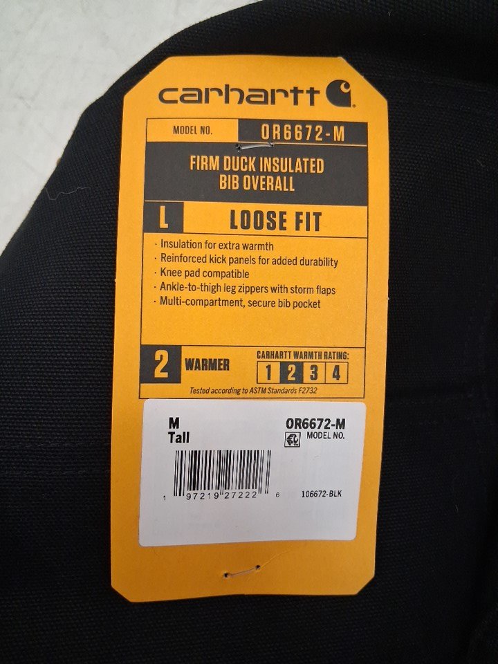 men's carhartt loose fit duck insulated bib overalls - medium- black (style: 0r6672)