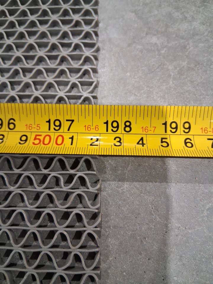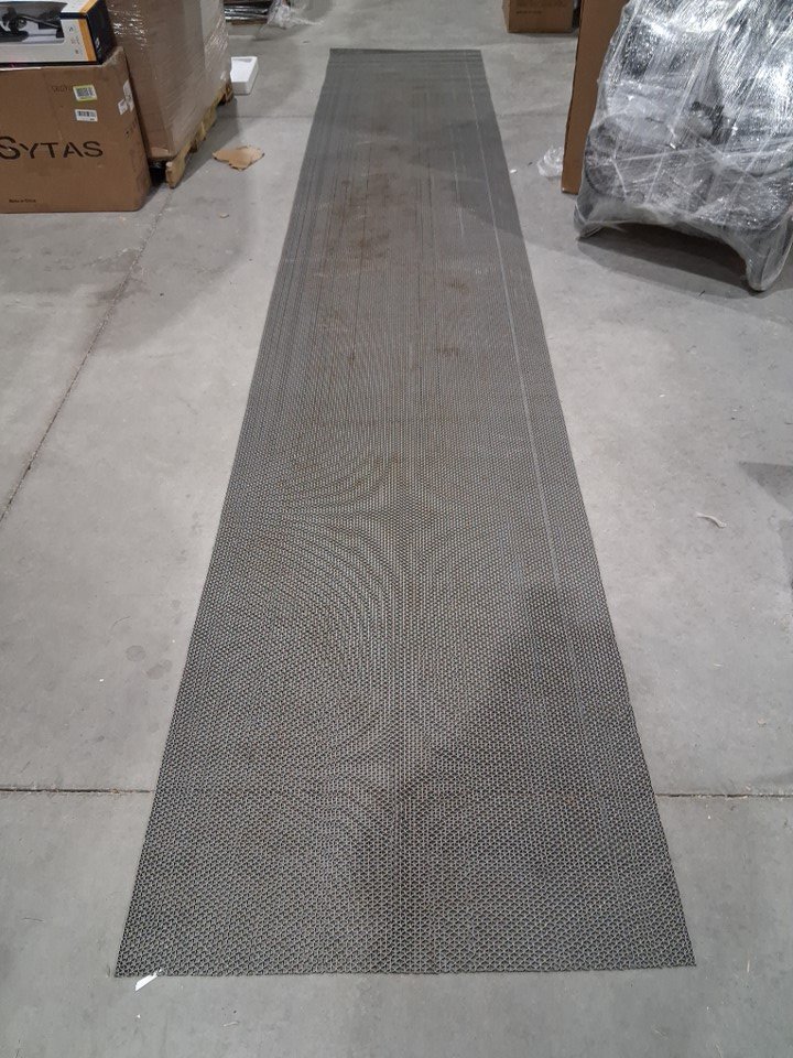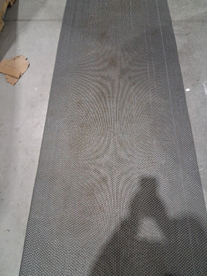 It is dirty, but can be hosed off and it has a 2FT cut at the end of the roll - see photos