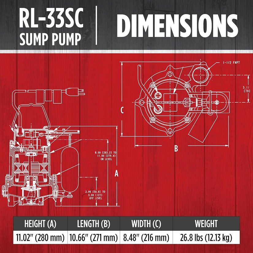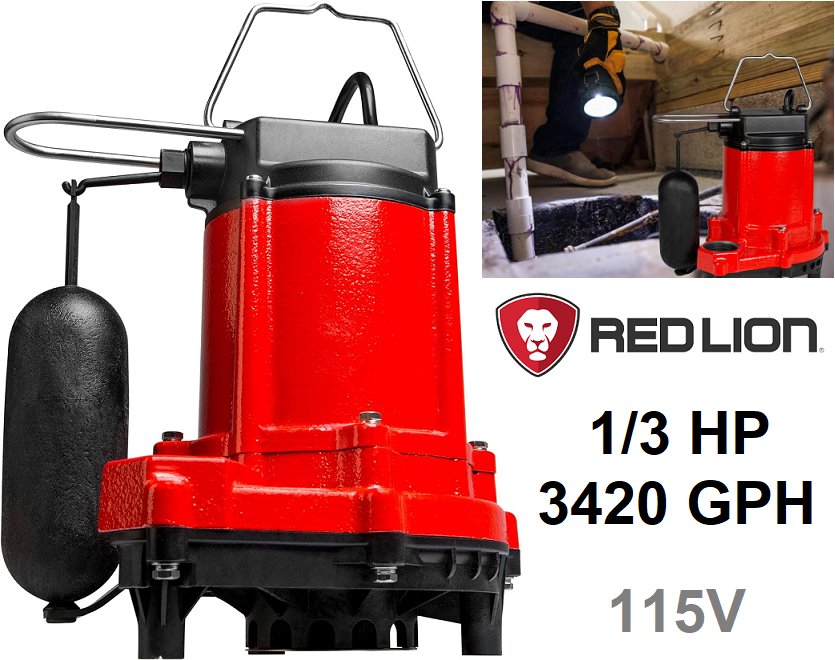 RED LION 1/3 HP, 115-Volt, 3420 GPH Cast Iron Sump/Effluent Pump with Snap-Action Float Switch - Red (Model: RL-33SC)
