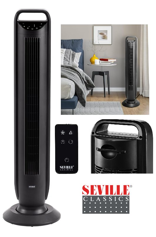 Seville Classics Oscillating Tower Fan with Touch Control and Temperature Sensor - BLACK (MODEL:1704090)