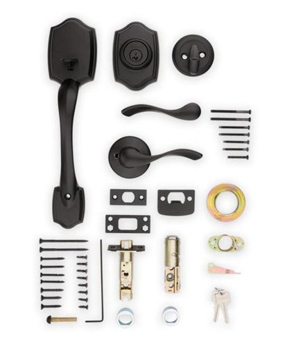 The door handle set is missing all of it hardware and also the keys for set but can be replaced or a locksmith can make new ones, see second photo and other photos.