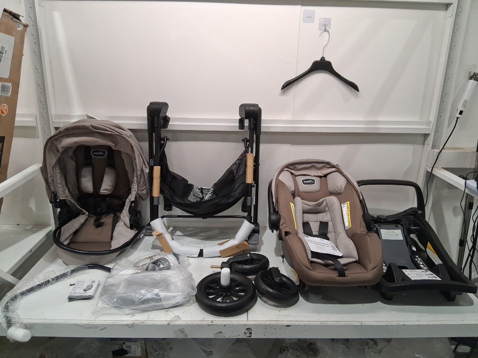 item is missing a large wheel for stroller, can be replaced at the evenflo parts website