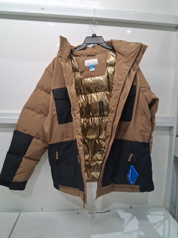 men's Columbia marquam peak fusion ii parka winter jacket - large - beige/gold lining
