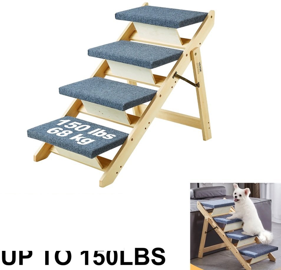 Sturdy 2-in-1 Foldable Wooden Dog Stair for Small Medium Large Pet - up to 150 lbs - 25" x 9" - grey (model: ZD-19-04)