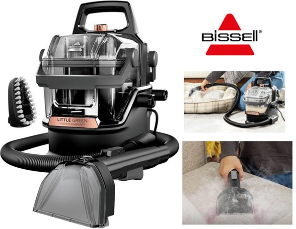 BISSELL LITTLE GREEN HYDROSTEAM multi-surface PORTABLE DEEP carpet/upholstery CLEANER- 64oz water tank - black (MODEL: 3618B)