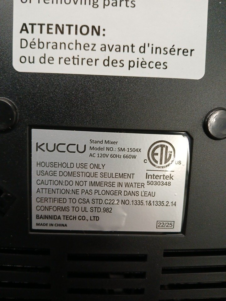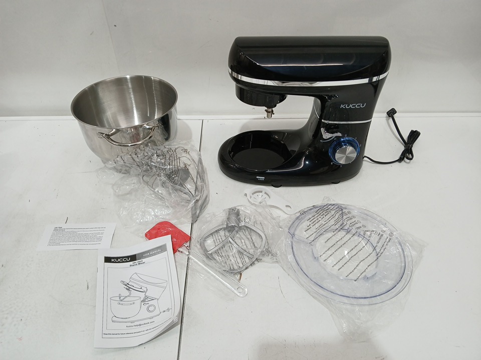 KUCCU 6-SPEED TILT-HEAD STAND MIXER WITH SPLASH GUARD & ATTACHMENTS - 5.5QT. BOWL - BLACK (MODEL: SM-1504X)