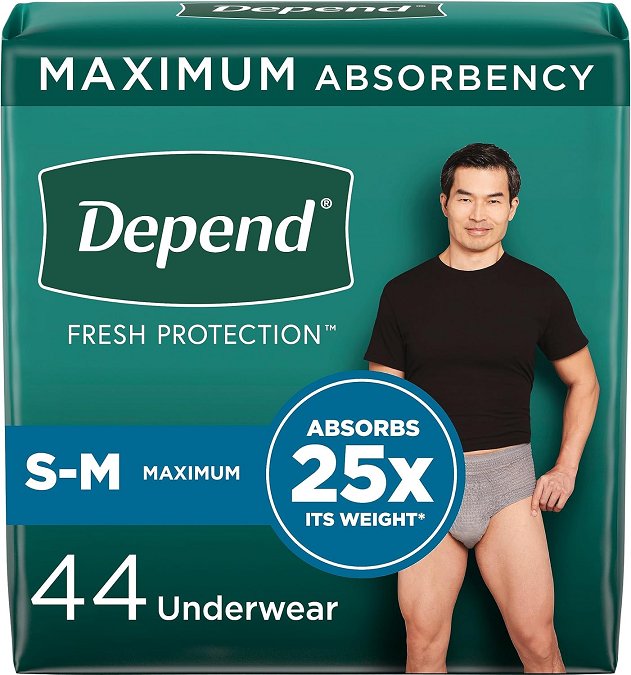 44pk mens depend Fresh Protection Adult Incontinence Underwear - small/medium - grey