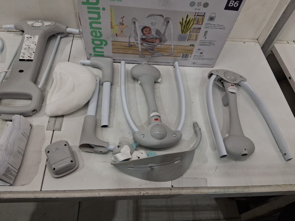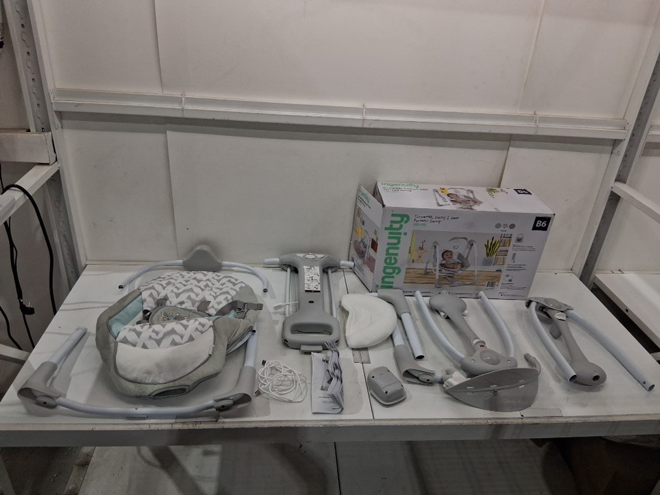Ingenuity 2-in-1 convertme compact portable baby swing & seat with vibrations & nature sounds - battery powered - 20lbs max- raylan theme/grey (model: ‎12189)