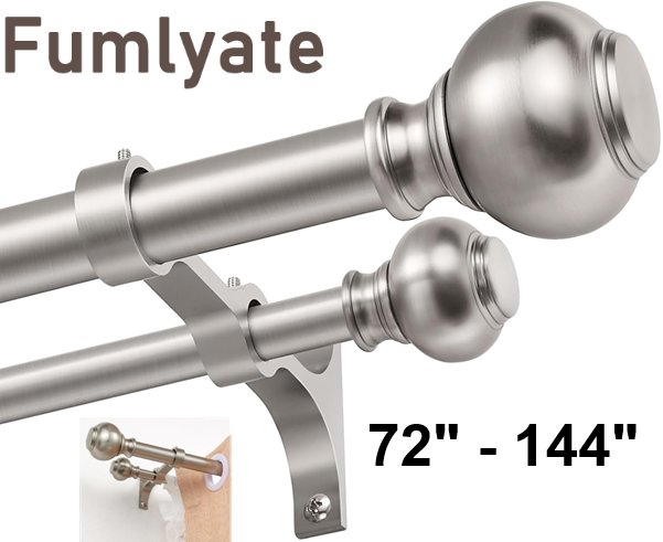 FUMLYATE adjustable double curtain rod - 72" - 144" - brushed nickel - (model: FA-024)