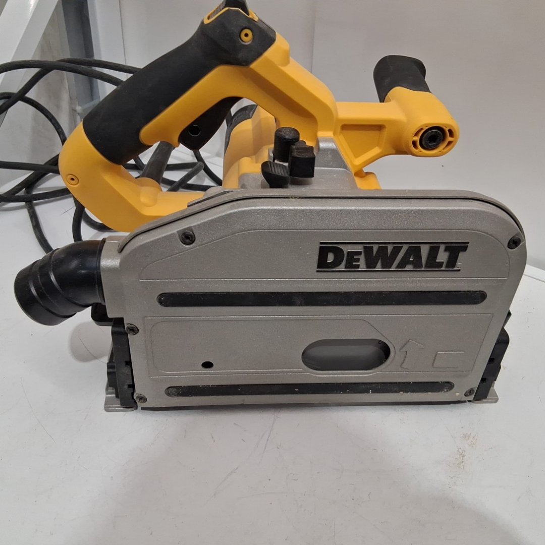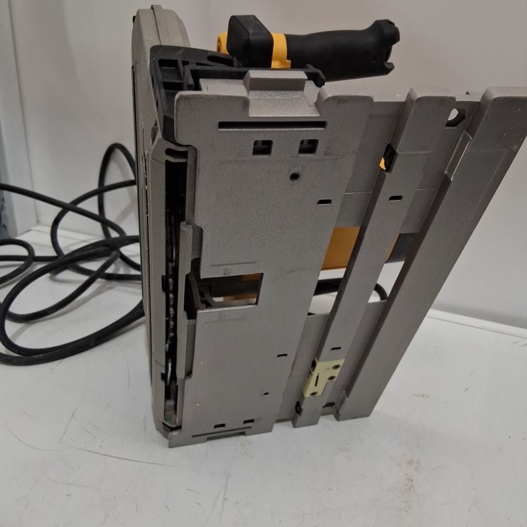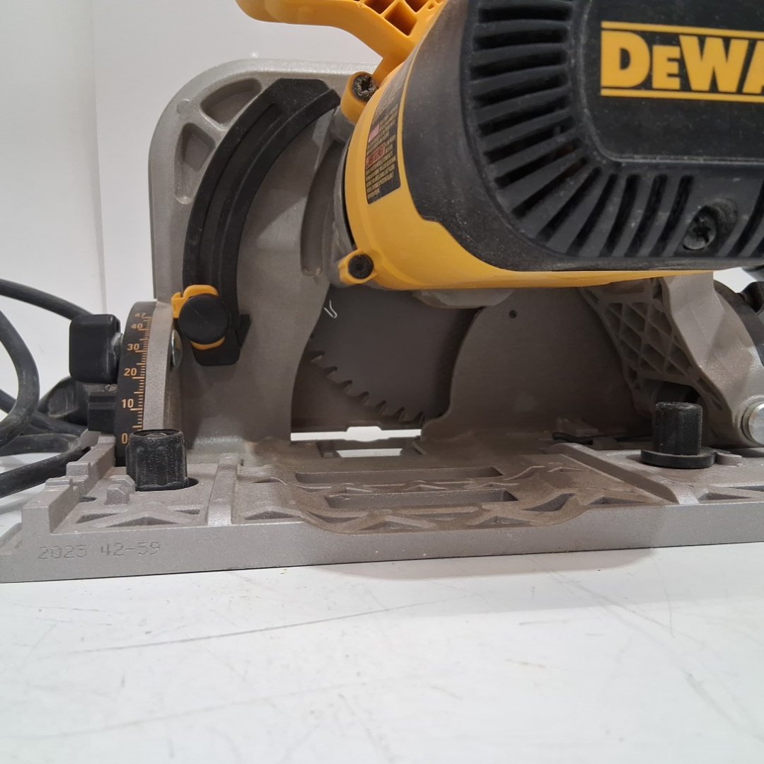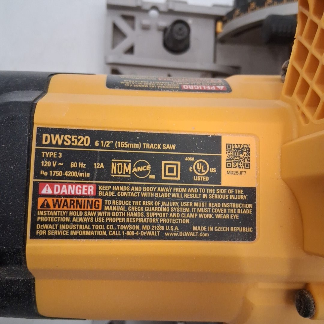 The blade wobbles a bit when turned on. There is light dust on the saw from previous use. Tested for power.