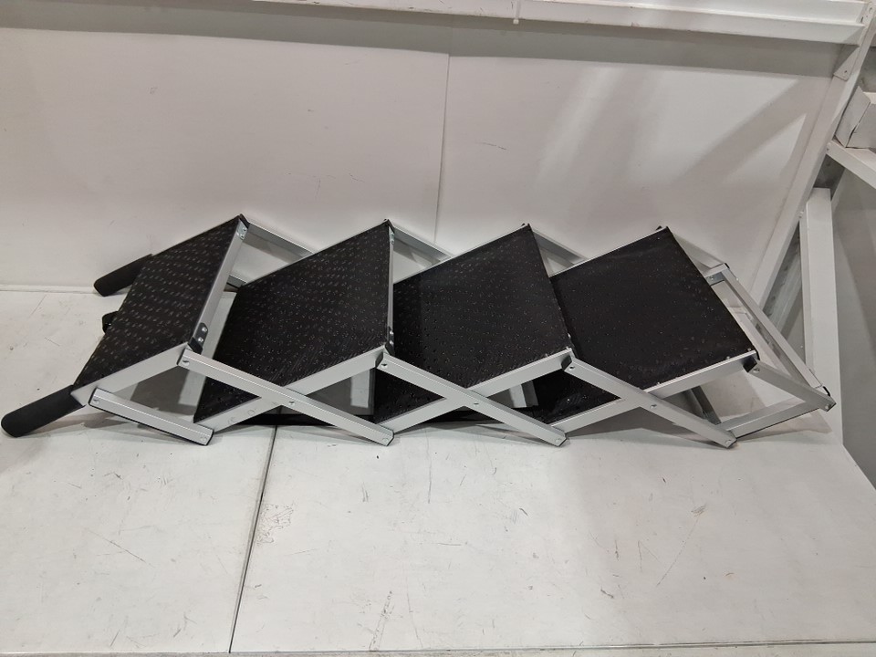 Dog Stair for Cars, wide 4 step folding dog ramp with non slip surface - 150lbs max - black/silver (model: CB-778N-5)