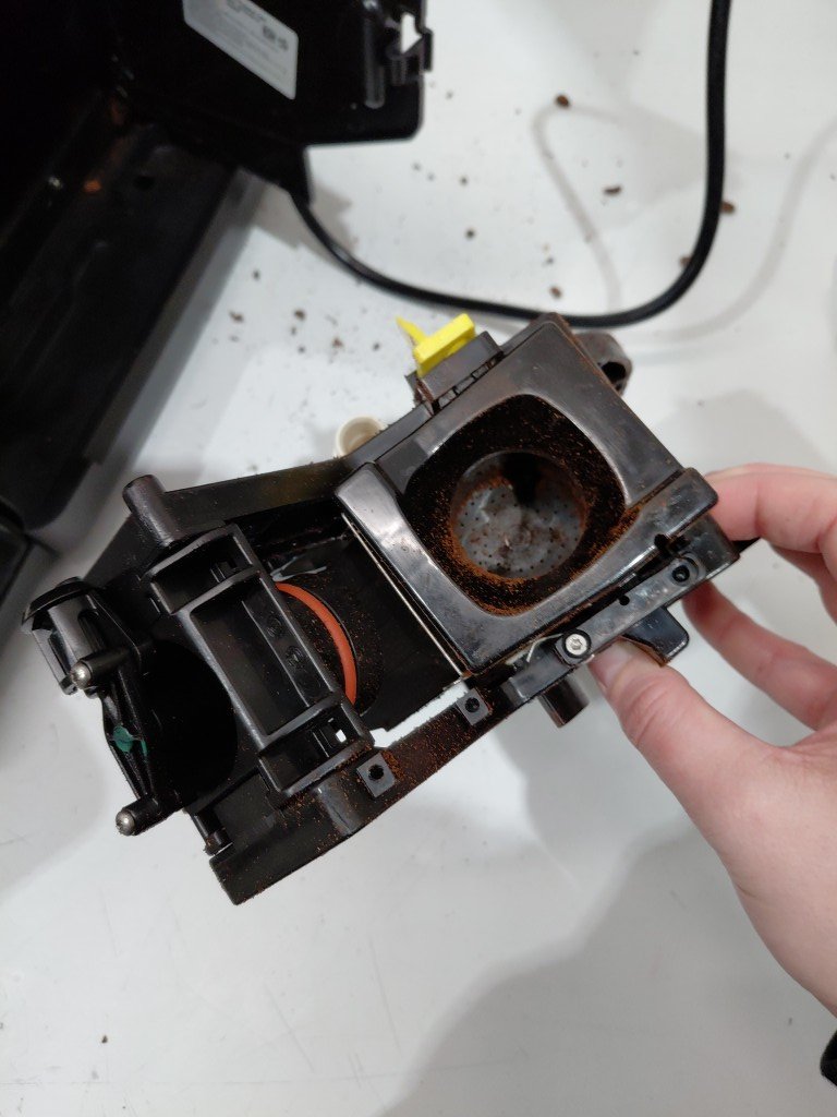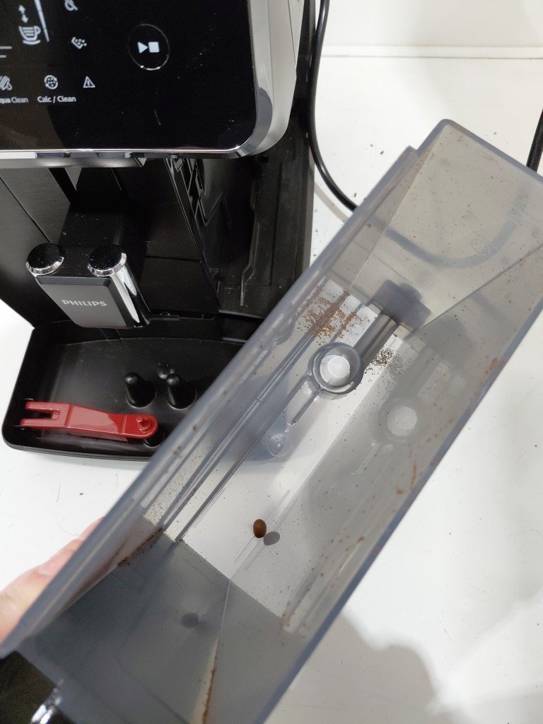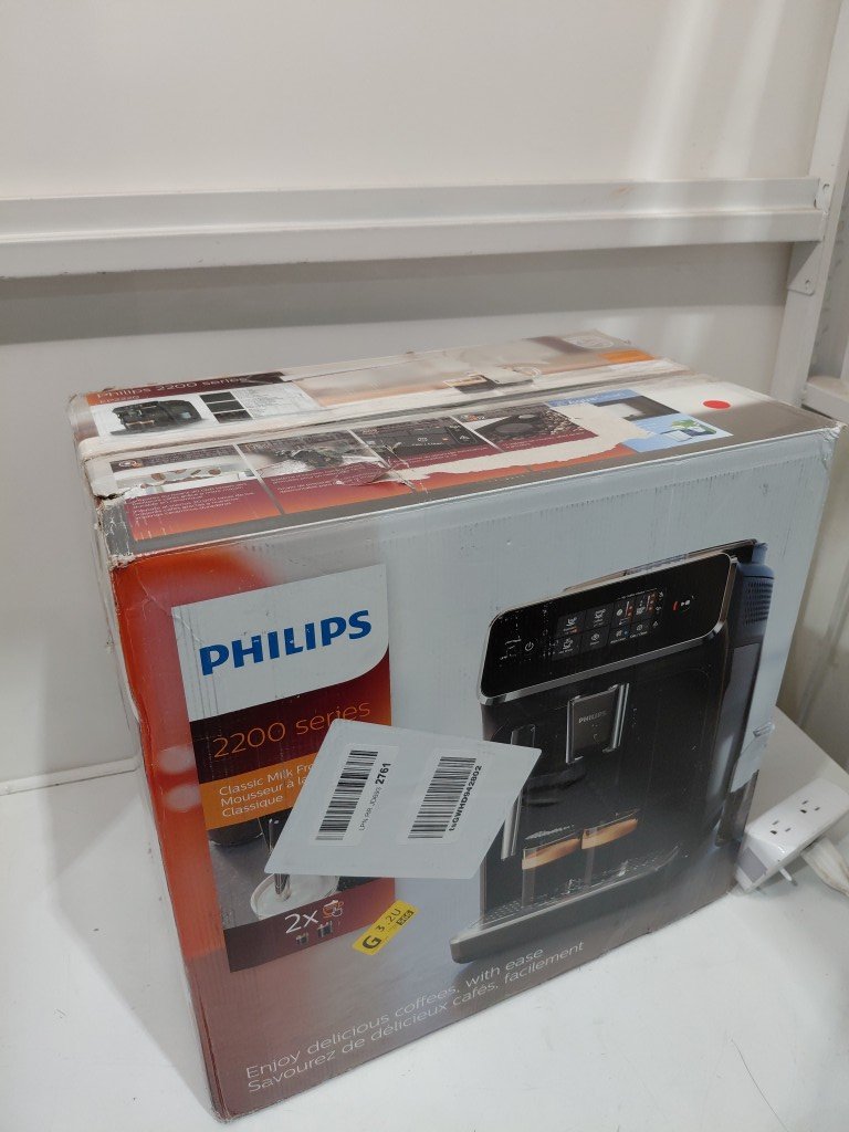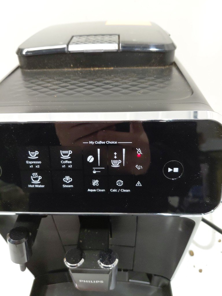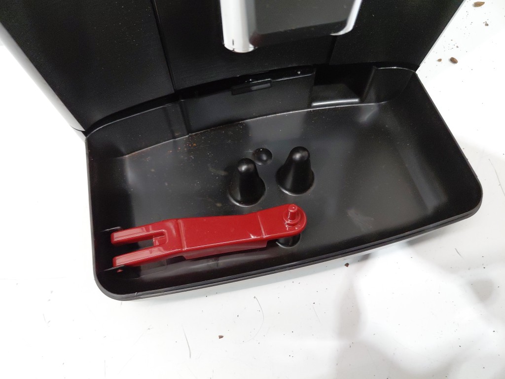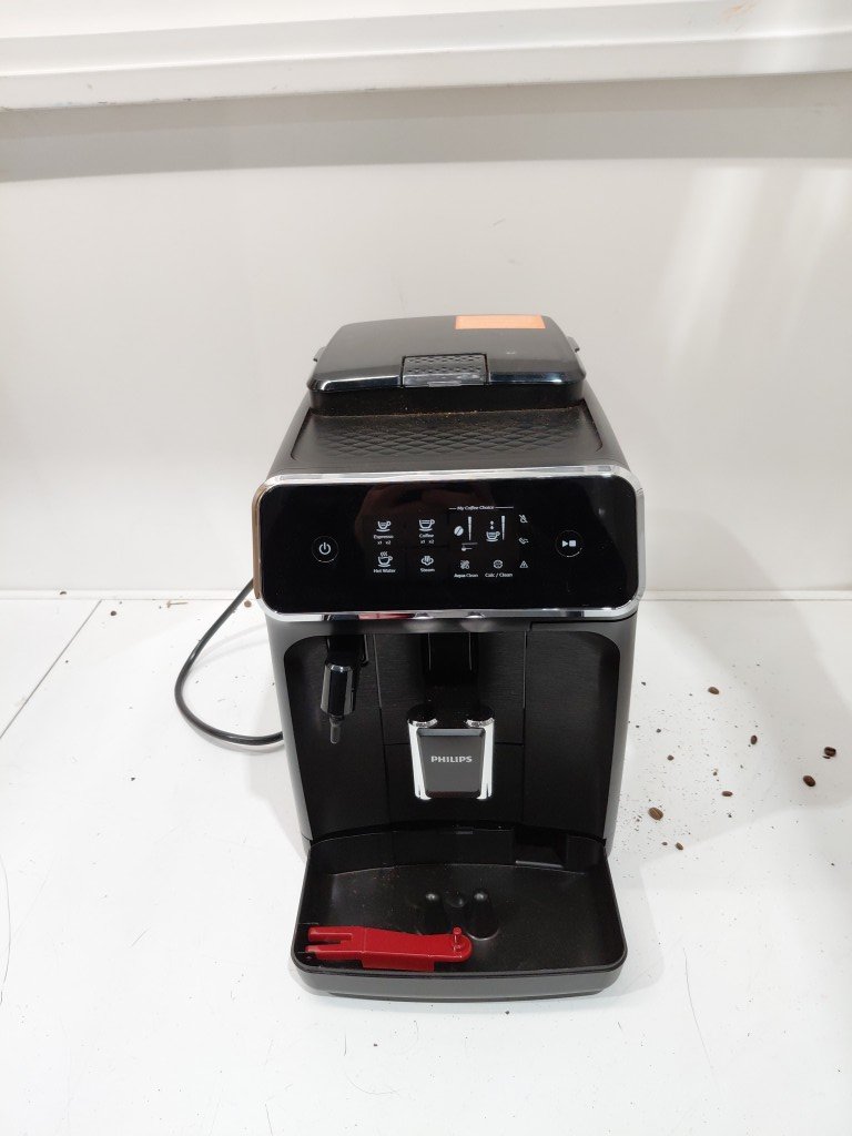 Missing drip tray & frother, both can be replaced. Item have coffee/grind residue from previous use. Item will need to be thoroughly cleaned before use (see photos) tested for power only