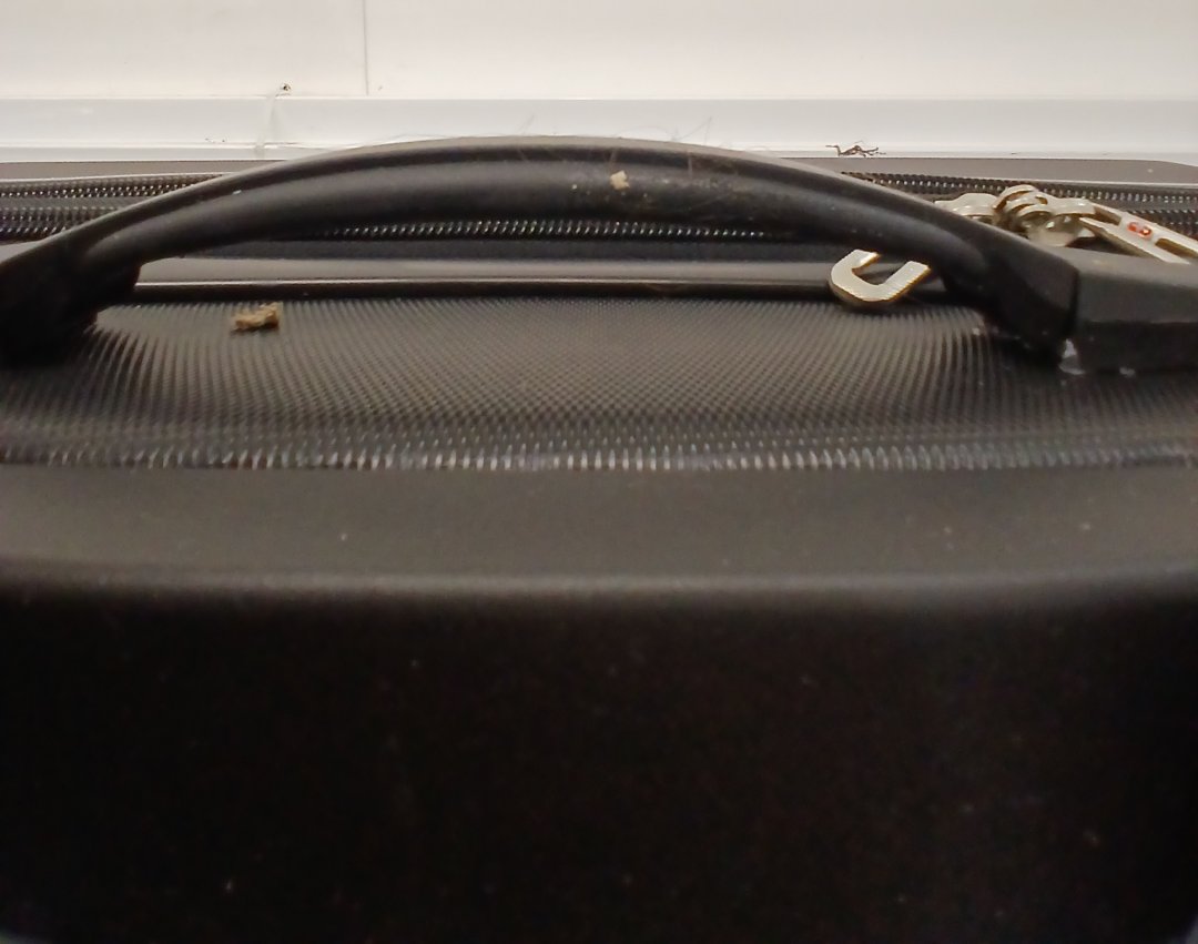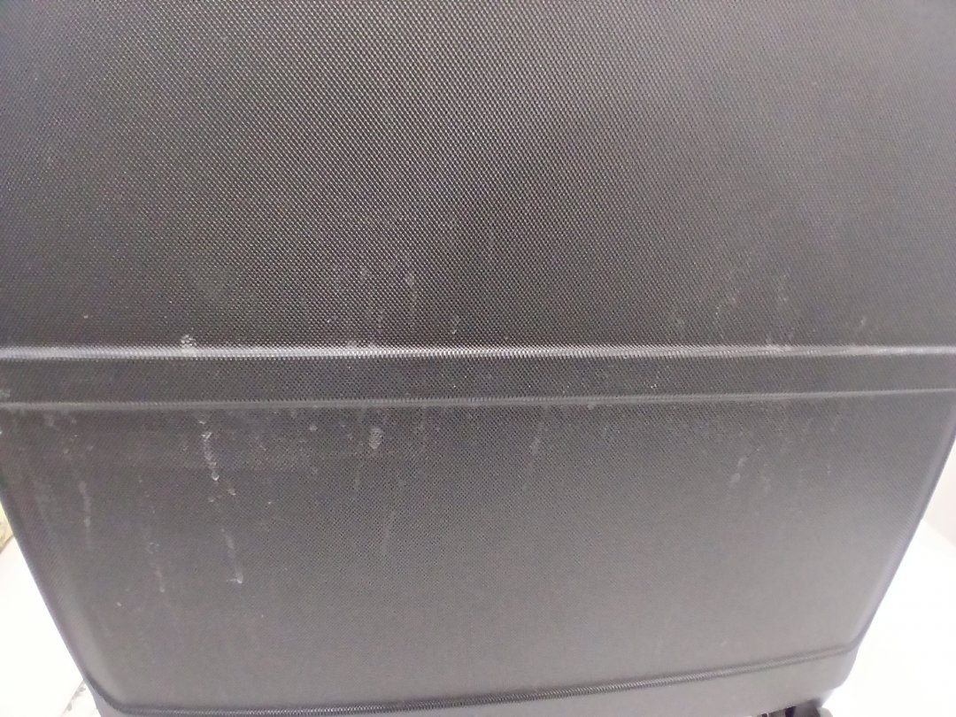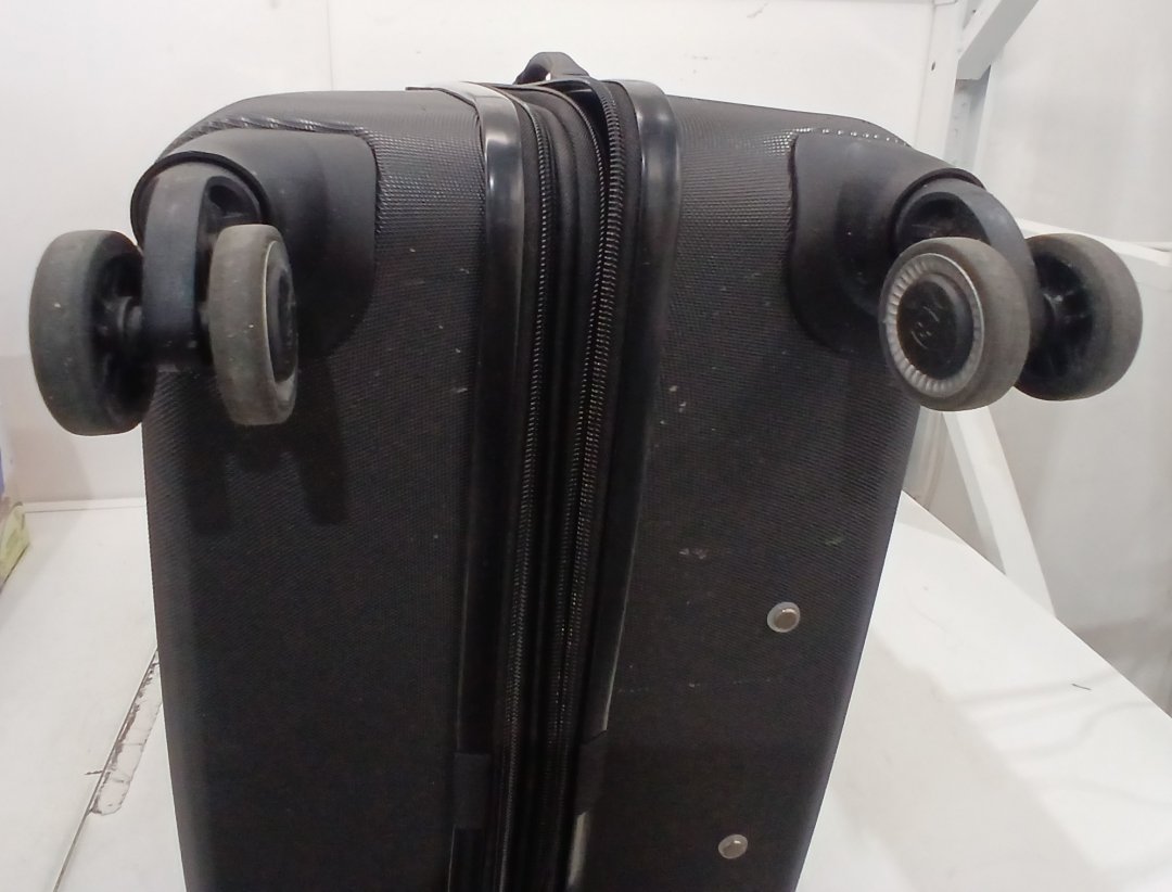 This item has minor scuffs, hair, the inside smells faintly like perfume, and the wheels are a little dusty from previous use