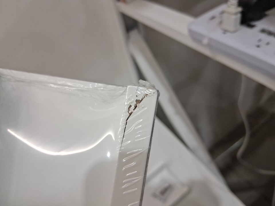 One of the shelves has a small crack.