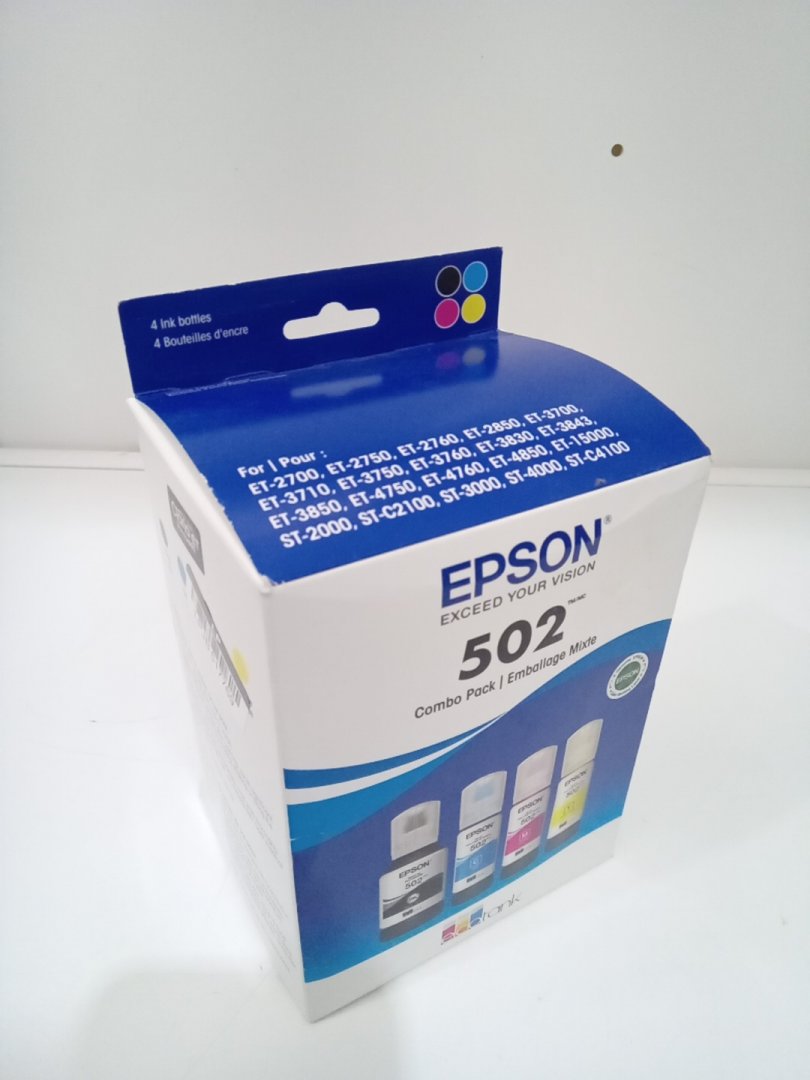 4PC Epson 502 Refill Ink Combo Pack for Select Epson EcoTank Printers - 127mL Black, 70mL CMY - Black, Cyan, Magenta, Yellow (Model: T502120-BCS / CPD-54348R1)