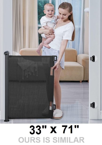 idea casa Retractable Mesh Baby Safety Gate - 33" X 71" - Black