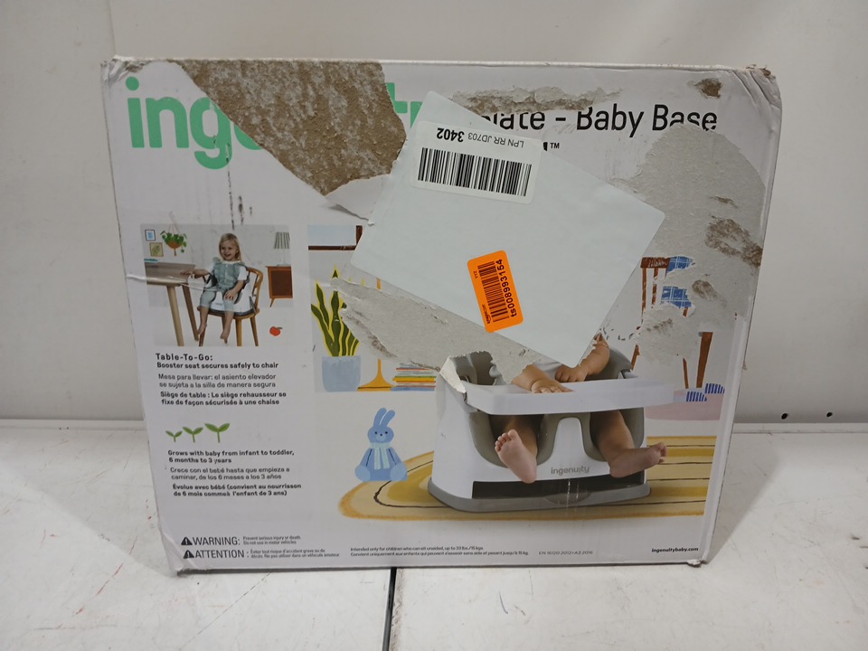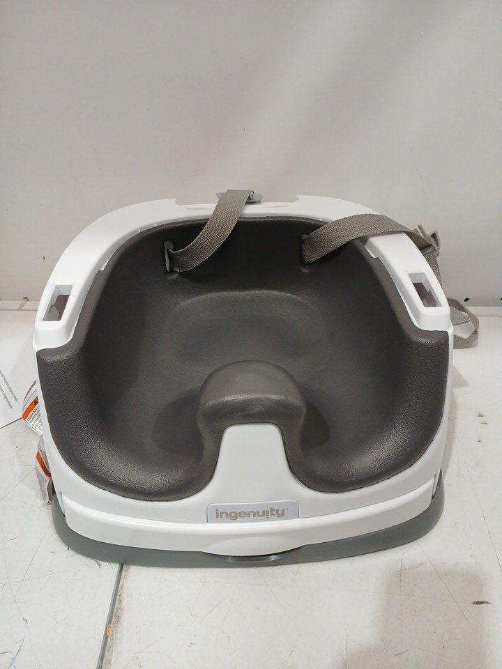 INGENUITY BABY BASE 2-IN-1 BOOSTER SEAT WITH FOOD & DRINK TRAY - 50LBS CAPACITY - WHITE/SLATE GREY - (MODEL: 11576)