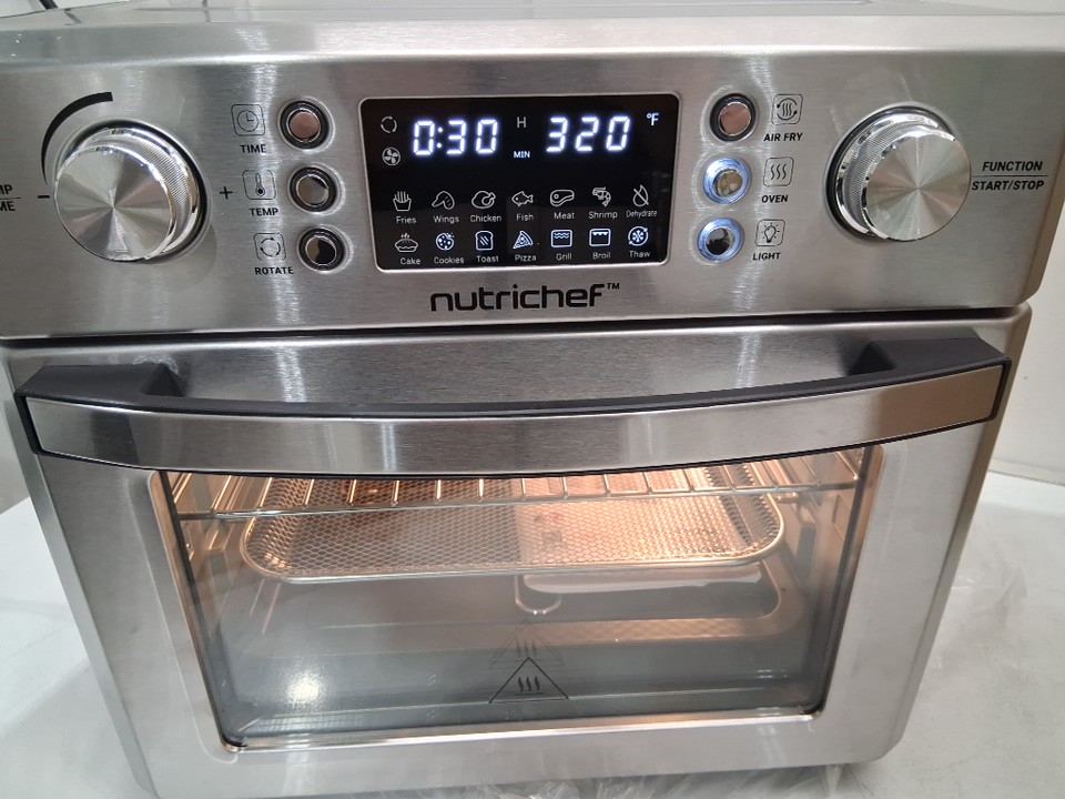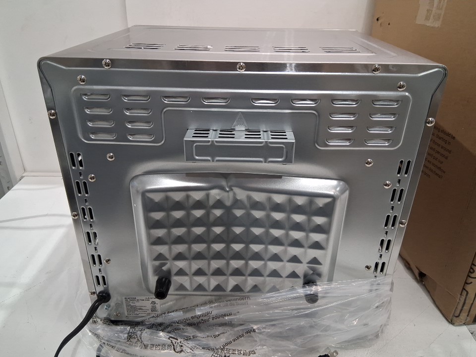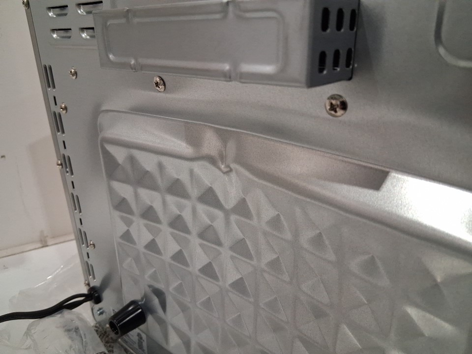 There is a dent in the back panel and one of the side of the oven, but it otherwise appears new (see photos) Tested for power