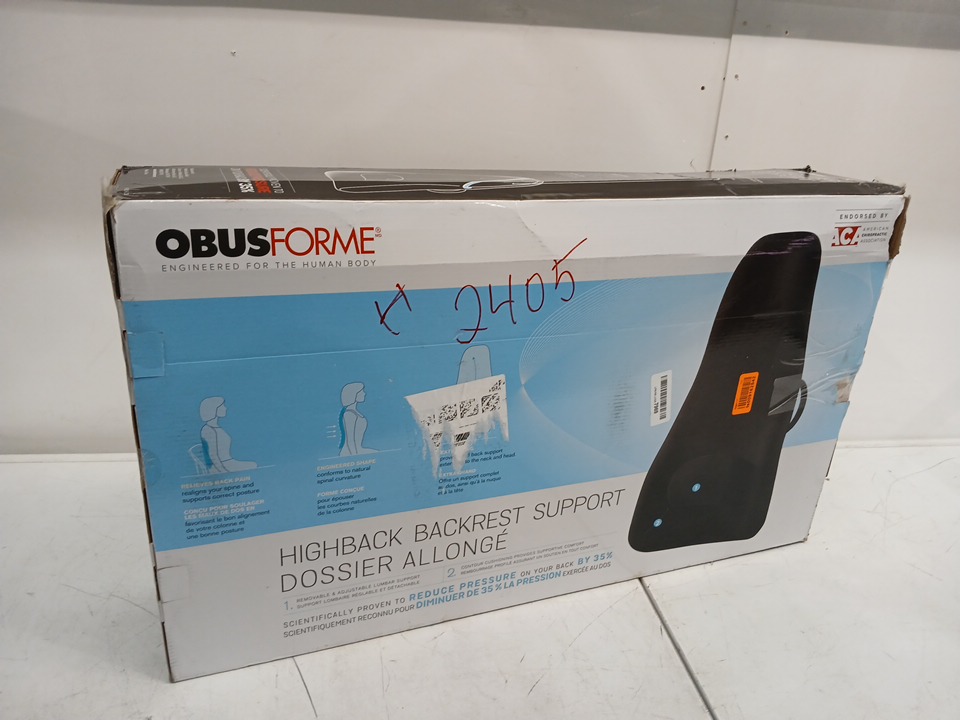 OBUSFORME HIGHBACK BACKREST SUPPORT WITH LUMBAR SUPPORT AND CHAIR STRAPS - 18" x 7" x 31" - BLACK (MODEL: HB-BLK-CBc)