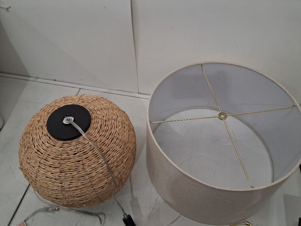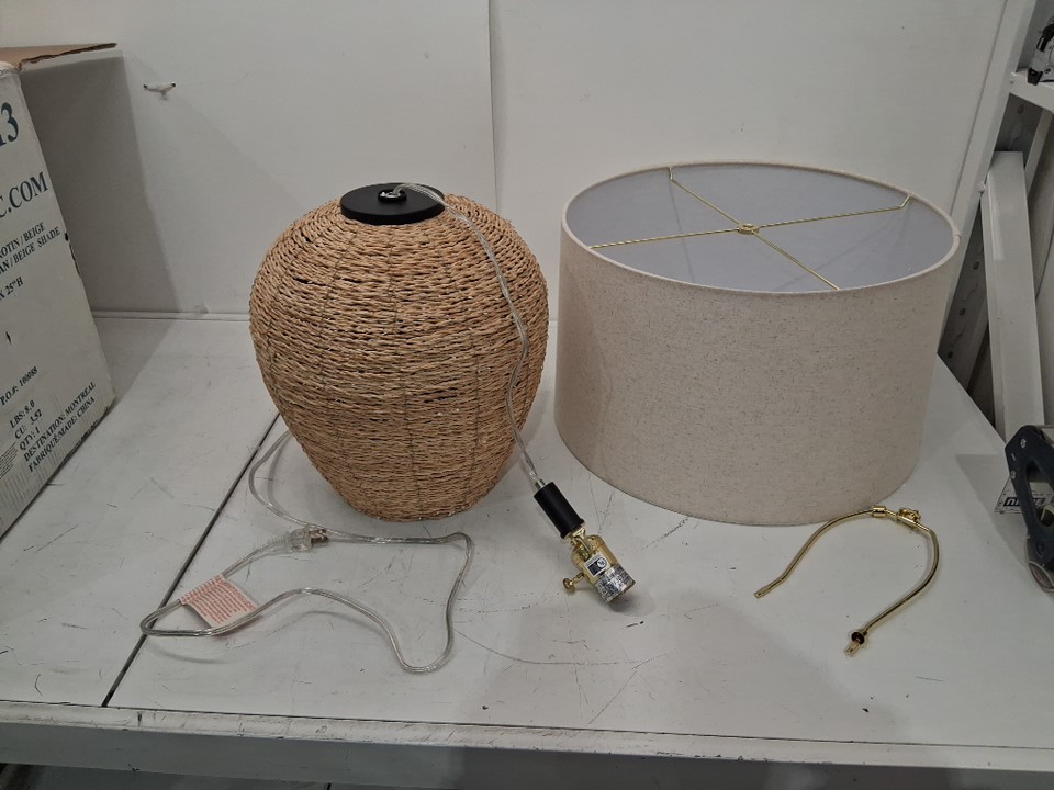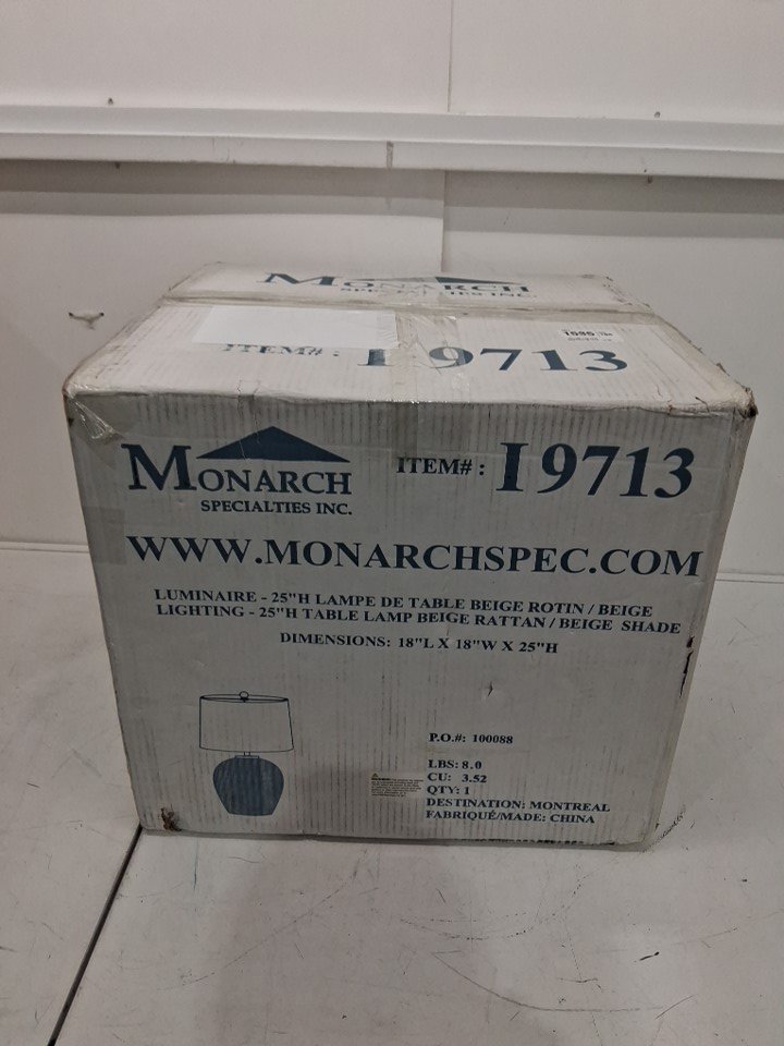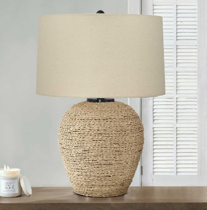 monarch specialties boho rattan table tamp with cloth light shade - 25" - beige (model: i9713)