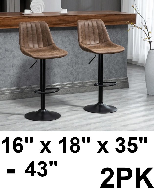 2pk HOMCOM Upholstered Adjustable Leathaire Swivel Barstools with Back and Footrest - 16" x 18" x 35" -43" - brown (model: 835-228)