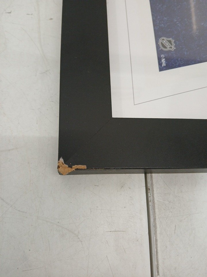 please note there is a small chip in the corner of the frame and one of the fasteners on the back is missing, also there is a small crack in the plexiglass, see photos