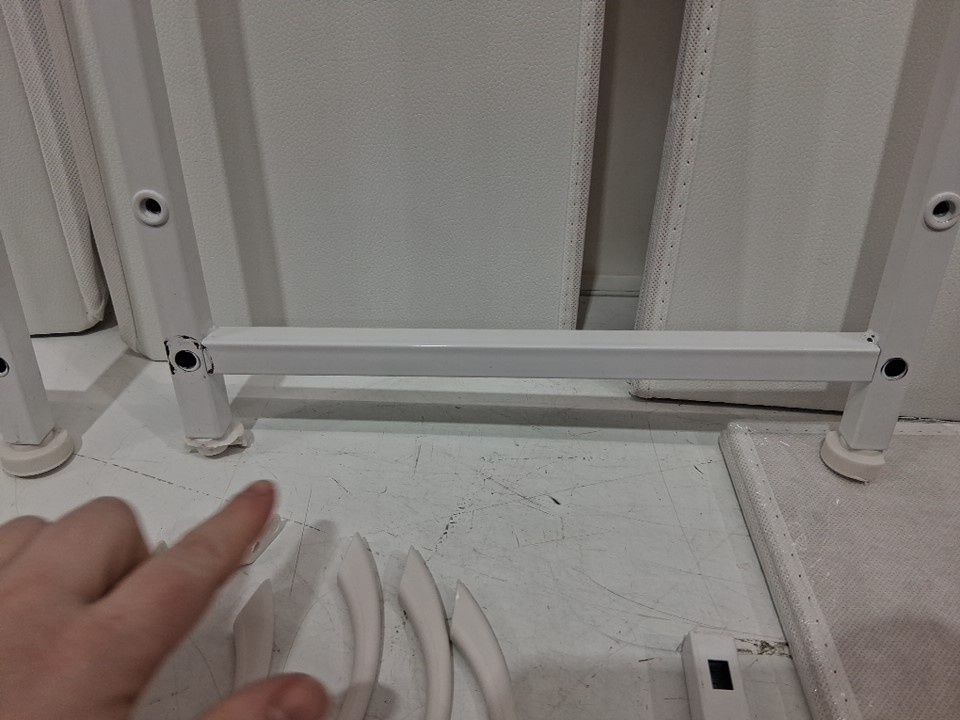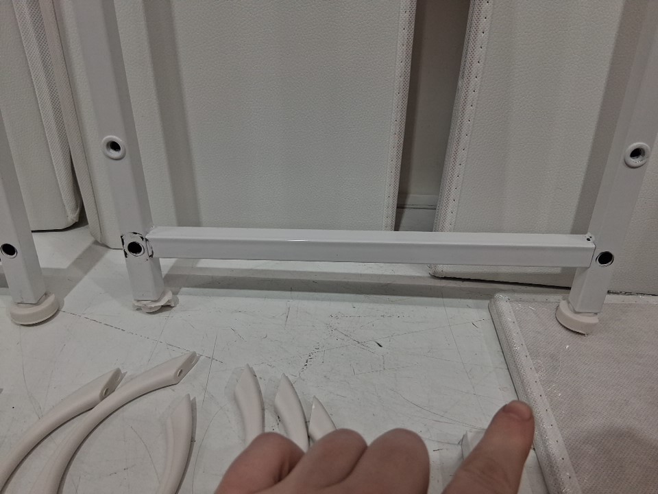 item has 2 broken feet at the bottom and is missing a couple handles board also has a small blemish ( see photos)