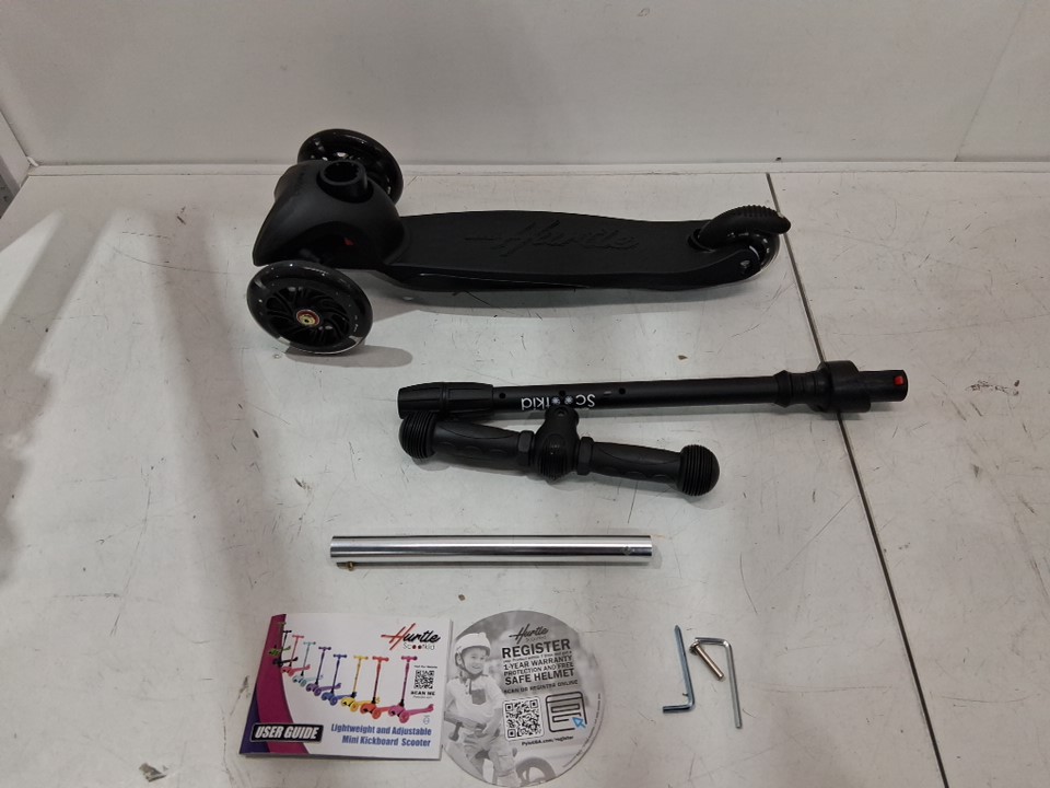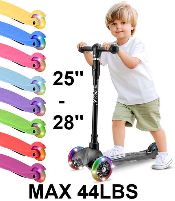 KID'S Hurtle 3-WHEEL ADJUSTABLE HEIGHT Mini Kickboard Scooter WITH LED LIGHT UP WHEEL - 25''-28'' - 44LBS CAP - BLACK (MODEL: HURSC13BK)