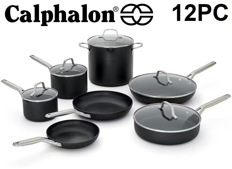 12PC CALPHALON HARD ANODIZED NON-STICK QUALITY COOKWARE SET - DISHWASHER SAFE - (MODEL: 2207649)