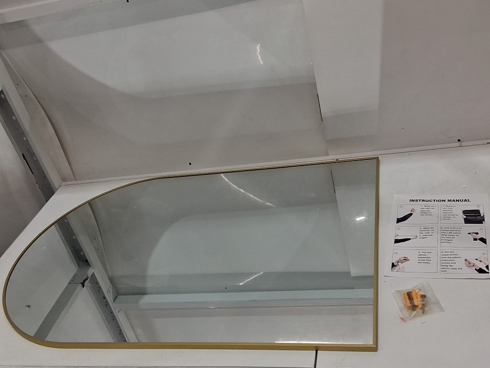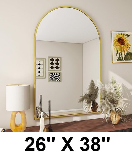 beautypeak wall mounted arched vanity bathroom wall mirror with metal frame - 26" x 38" - gold
