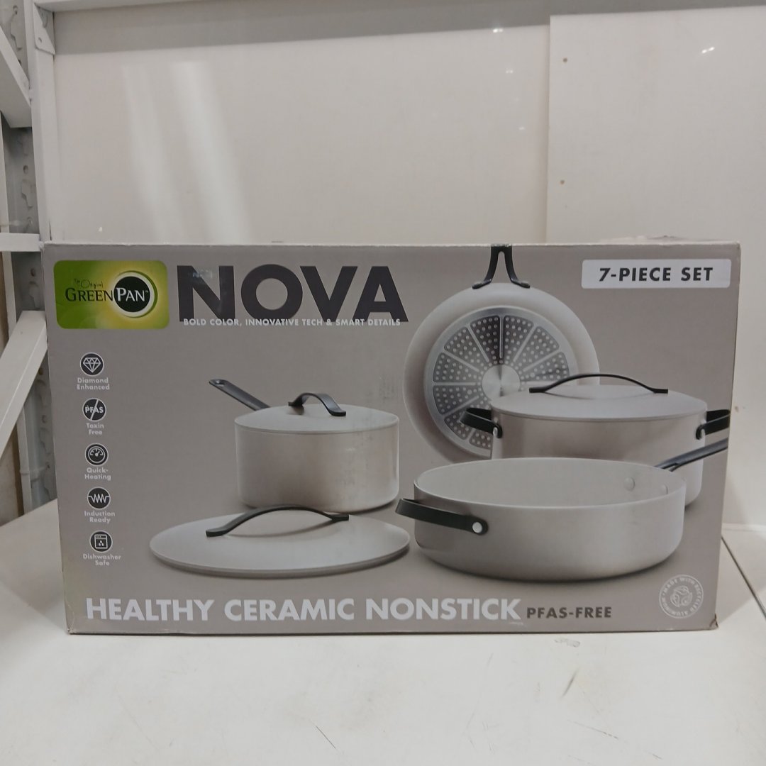 7PC THE GREEN Pan nova ceramic non stick aluminum cookware set - clay, light grey (Model: 8620-004)
