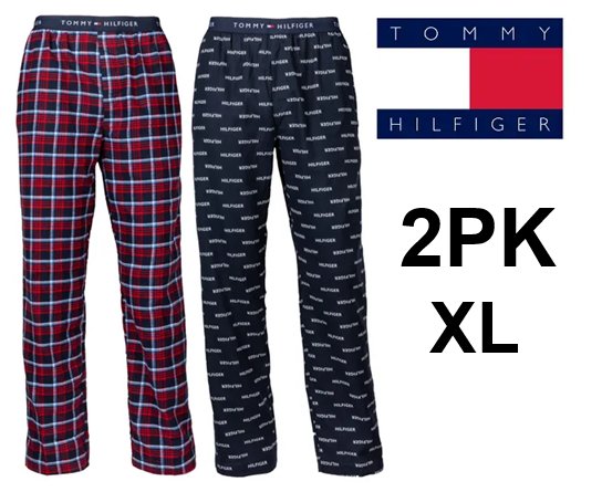 Men's 2PK Tommy Hilfiger flannel pants - extra large - red plaid/ navy blue (Model: 3333384)