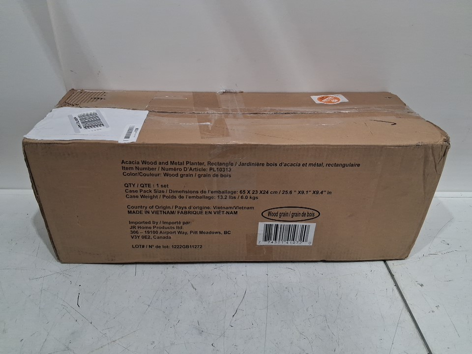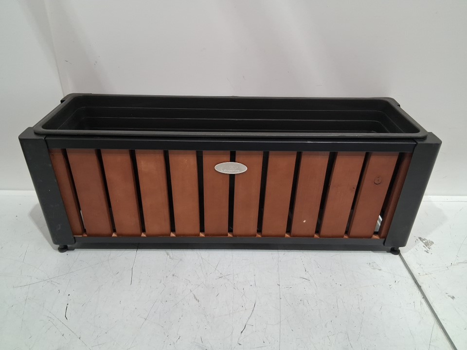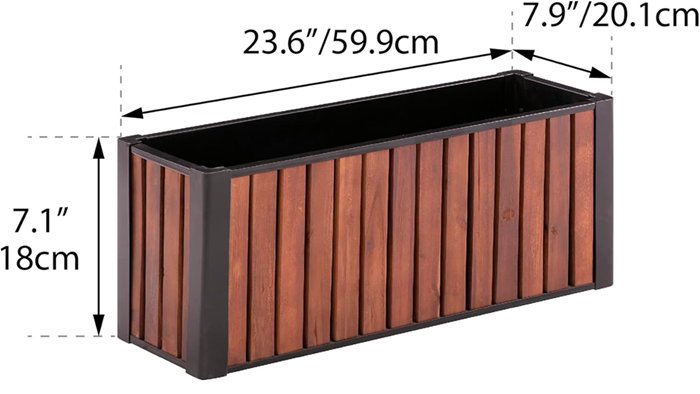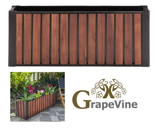 Grapevine Rectangular Slat Wood and Metal Planter - 24" x 7" - BROWN (MODEL:PL10313)