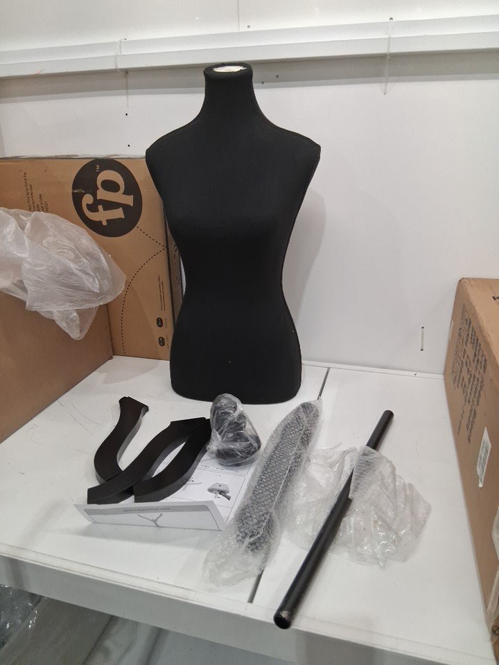 Female Mannequin Torso Dress Form Stand with Wooden Tripod Base - 5FT - 5.6FT Height Adjustable - black (Model: XU-F340-black)